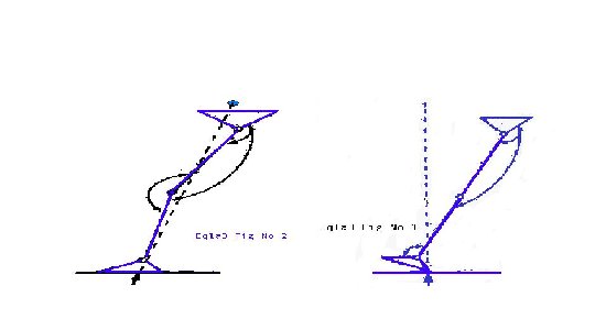 الرسم رقم 1 يمر الخط امام الحوض: ينثني الحوض بحدود 25 درجة, امام الركبة مع الفرد بواسطة ثقل الجسم, خلف الكعب بشي بسيط.